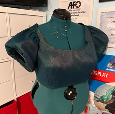 I draped my own pattern and made 3 mock-ups to get the fit right. Regency silhouettes can be tricky, so I went with a longer bodice for a more flattering shape while still honoring the design. The dress is three layers: a green/copper color shift metallic satin, a teal mesh, and the topmost is a dark blue mesh, & I dyed the mesh layers to get the colors just right. I sewed up bodice, added a triple bust dart, and made piping for the neckline & sleeves. Once the bodice was done, I patterned the vine embroidery pattern for the front and back. For the embroidery I studied references and used them to draw the design in Adobe Illustrator. I didn’t have embroidery software at the time, so the digitization was commissioned from Etsy. The skirt took 56hrs: 4 panels, 9 hoops each, 14hrs per panel. I used threads & stabilizer from @wonderfilspecialtythread and their products were a dream to work with! I used a water-soluble stabilizer that I washed away with no residue on the fabric. I love looking at these side-by-side of my embroidery with references; can you tell which is which? After installing the zipper, I added a bow, hand-sewed the embroidered vines to the top, & finished the sleeves with feathers and embroidered applique. Then came my favorite part: sparkles! I beaded the bodice using multiple colors of beads, copper sequins, and rhinestones. I also added sequins to the embroidery on the skirt. My lacefront wig is from Amazon, and I styled it with pin curls, sculpted baby hairs, and Hollywood waves. I added a feather & rhinestone comb I made myself! For the photoshoot, I made Lady Whistledown pamphlets and brought in antique props. Huge thanks to @adoylible for photographing me in her beautiful studio space!