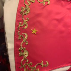 Looking for a halloween themed design to make, I came across a witchy design of Princess Peach by Fonteart on Instagram. I loved how cute this design was, and I went straight to work and the majority of materials used I already had on hand. I started making the hat, belt, and smaller props and details first. The hat and belt are made of 5mm EVA foam, covered in scratch fabric. I purchased a hat pattern and tutorial by @kinpatsucosplay, so it saved me a lot of time not needing to draft my own. The next step was the pink skirt with a super high waist. I patterned the skirt with a zipper back closure, boning, and four slit openings. It is lined and features iron on applique and butt on details. I also created a white underskirt that has a wide horsehair hem, tacked in place, to give it extra bounce. Then I created the blouse out of stretch knit and matching pink satin for the sleeves. The skirt has a keyhole button closure in the back, ruffled front, neck bow, and eyelet collar. To finish off the look I crested a glitter potion bottle, glittered my shoes, and decorated a witches broom with some pink ribbon and leftover appliques. I'm so happy with how it turned out! It was such a cute look to wear for Halloween, and it was lucky that we took photos in the cutest little cottage town!
